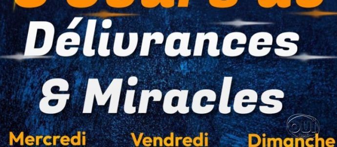 3 Jours de Délivrances & Miracles à l’Assemblée de Dieu Saint Pierre (Entrée Gratuite) L’Assemblée de Dieu Saint Pierre vous invite à participer à 3 jours exceptionnels de Délivrances & Miracles ! Venez chercher l’intervention divine et la solution en Jésus. Le thème de cet événement puissant est : Jésus est la solution. … Continue reading 3 Jours de Délivrances & Miracles à l’Assemblée de Dieu Saint Pierre (Day 2)