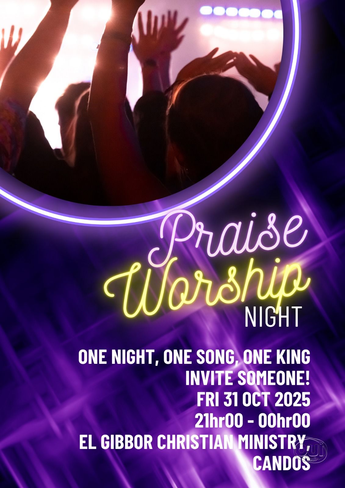Vous ne pouvez pas vous déplacer ? Bonne nouvelle ! L’événement sera diffusé en direct sur OUi Radio, vous permettant de vous connecter et de participer à l’expérience où que vous soyez. C’est l’occasion d’inviter quelqu’un, de vous connecter à votre communauté et d’expérimenter la présence de Dieu.